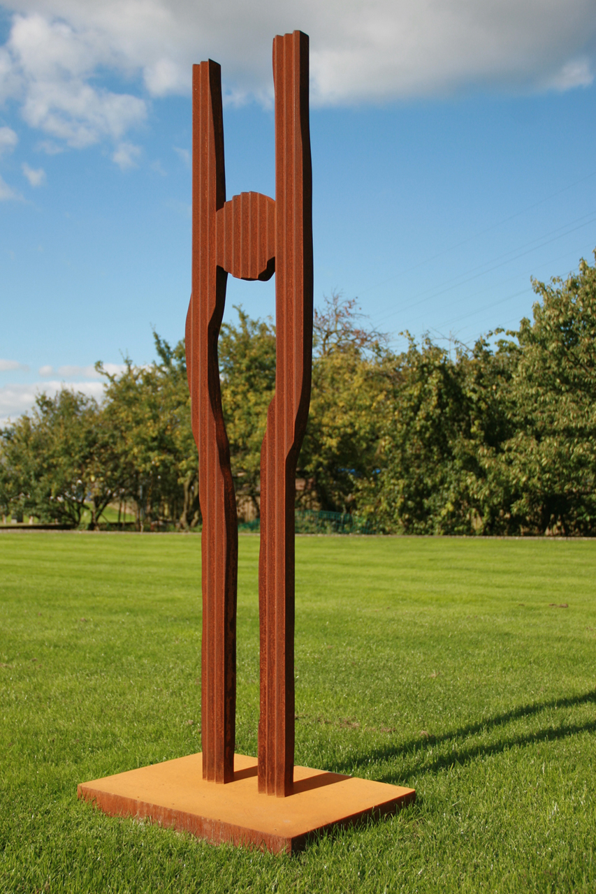 the contrast between the material (corten steel) and the vulnerable figure enhances the expression. the rust color, the deterioration of the surface, increases the layered character.